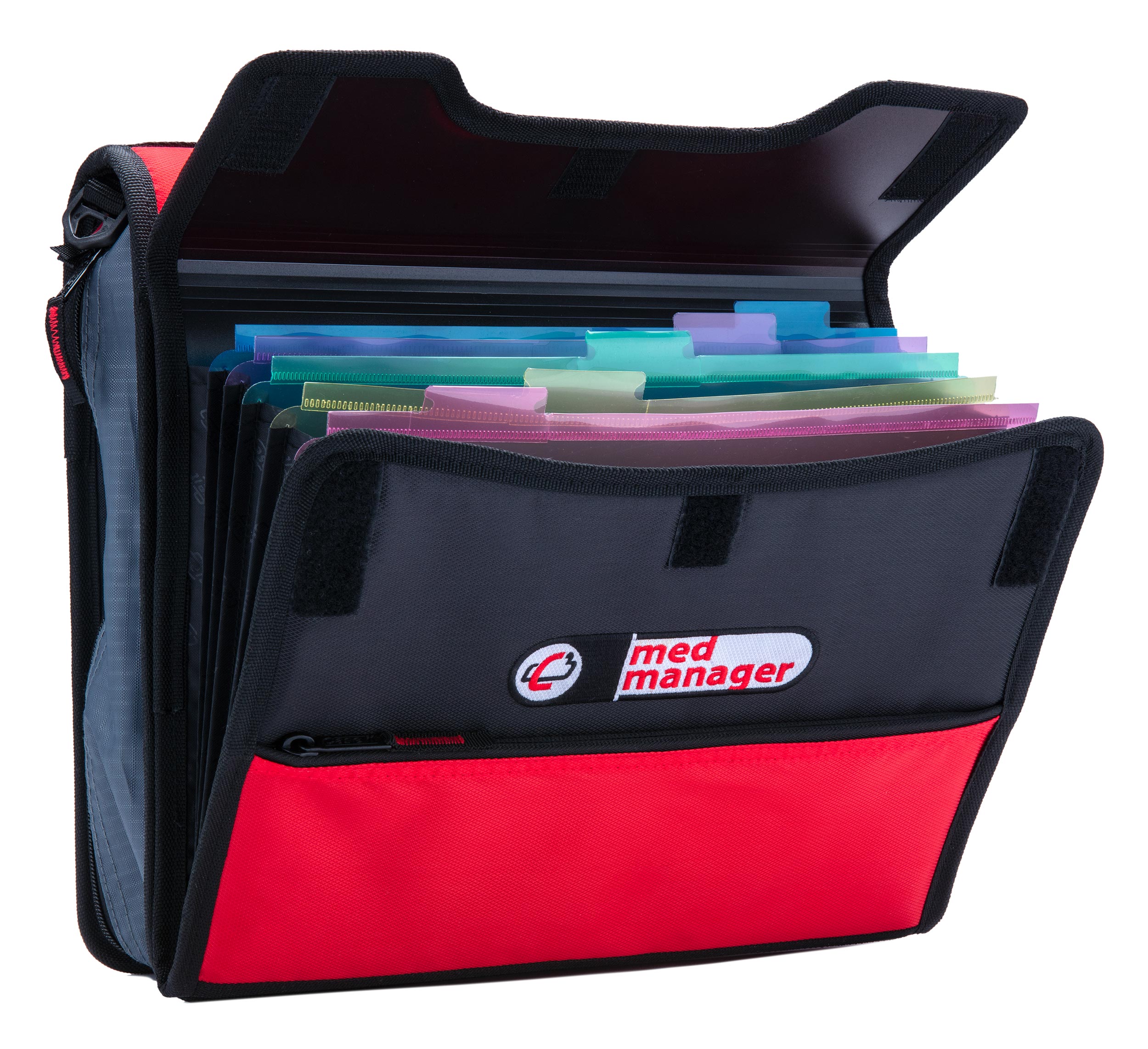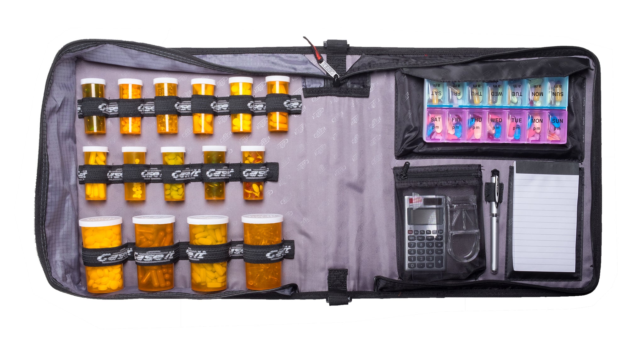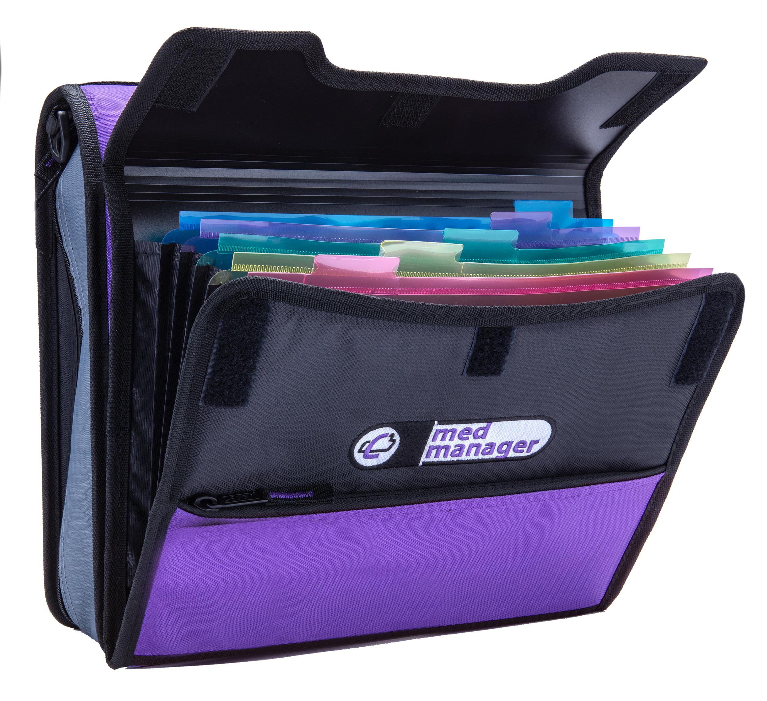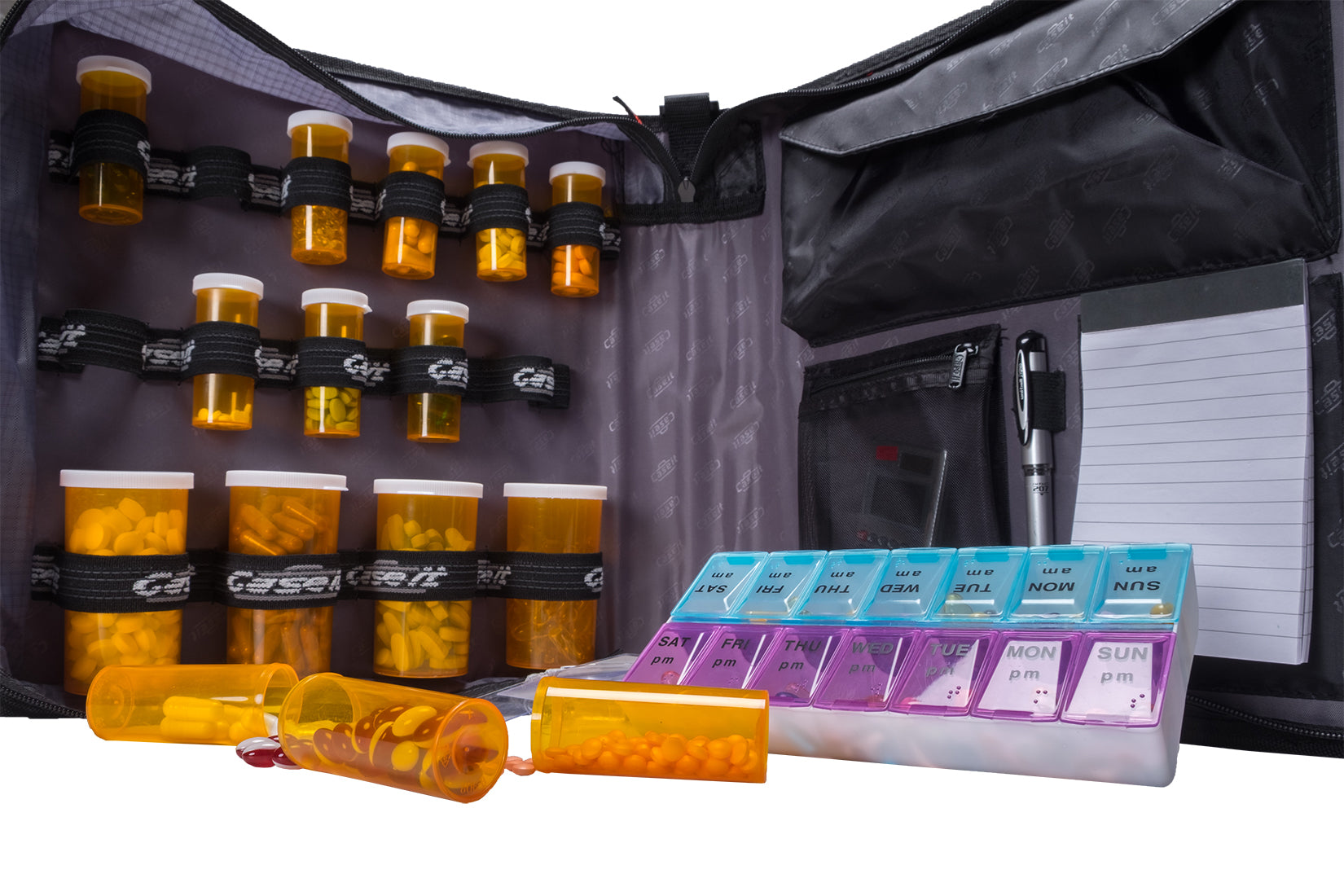 Built with 15 varying-sized elastic bottle loops, a prescription pocket, and card slots for insurance or IDs, this medium binder makes it easy to organize your health essentials. Additionally, the full zip-around closure, durable outer shell, grab-and-go handle, and shoulder strap make it easy to carry to doctor visits, clinics, or traveling. It’s lightweight, protective, and built for the everyday realities of managing medicines and medical document storage.