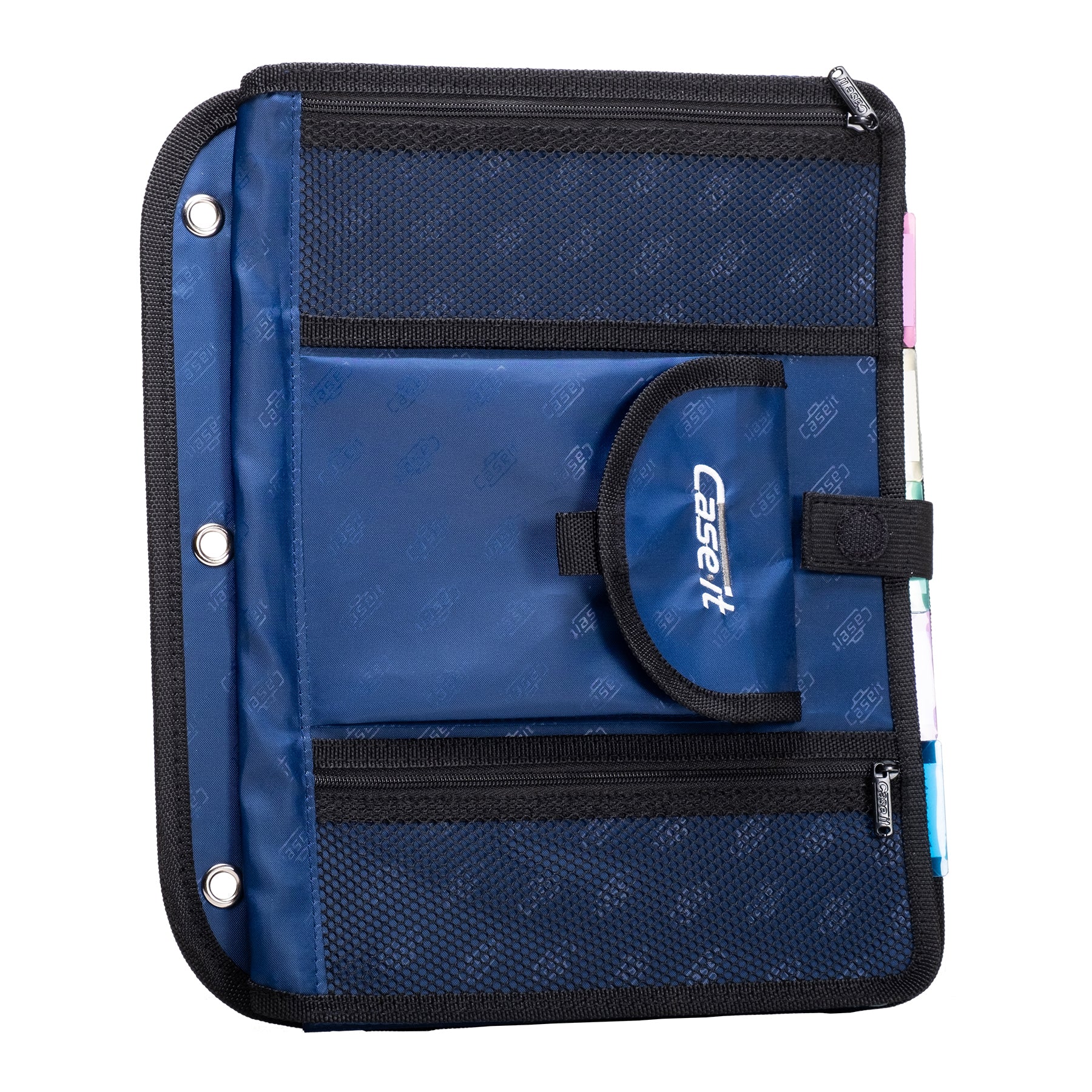 Keep everything sorted with ease. The 5-Tab features six expanding pockets that attach to any standard 3-ring binder via its built-in grommets. Secure it with the hook and loop tab closure and label it with five colorful tabs for instant categorization. Slip in nearly an inch of papers, then store your pens in the mesh zip pencil pockets.