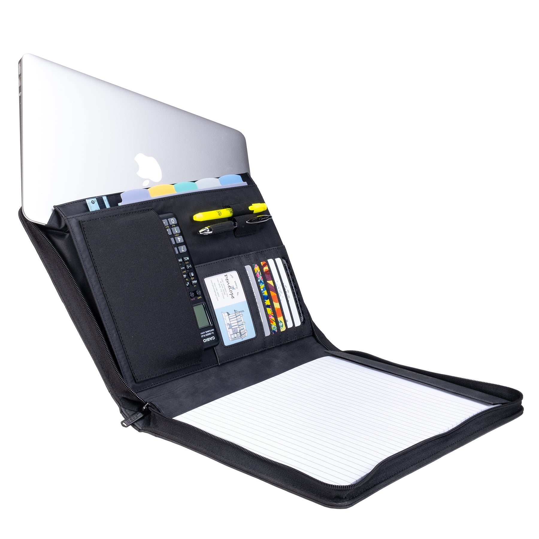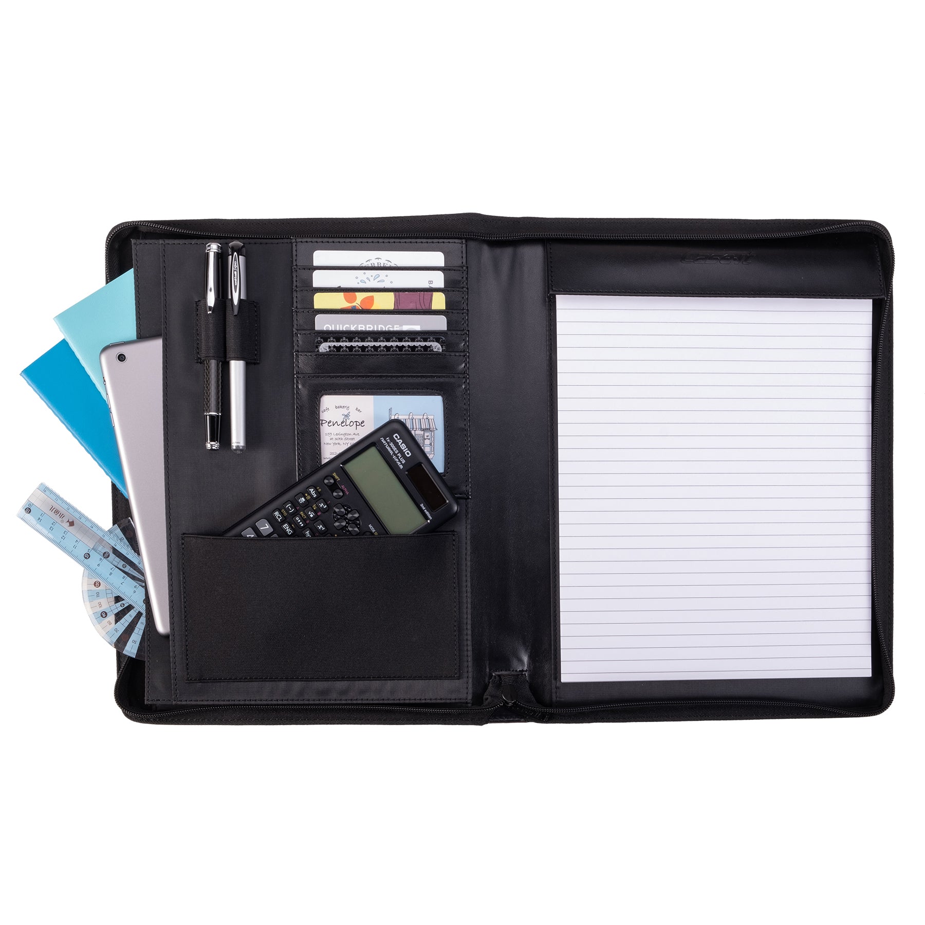 Stay unapologetically organized with dedicated slots for documents, cards, and a writing pad, which lets you command more and stress less.